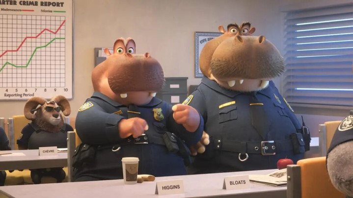 此外,朱迪那唠唠叨叨、思想守旧的父母,呆萌贪吃的豹警官,脾气暴躁的牛局长,阴谋老道的羊副市长等等,以上这些角色大都被保留到了《疯狂动物城2》中。然后,毫无变化: